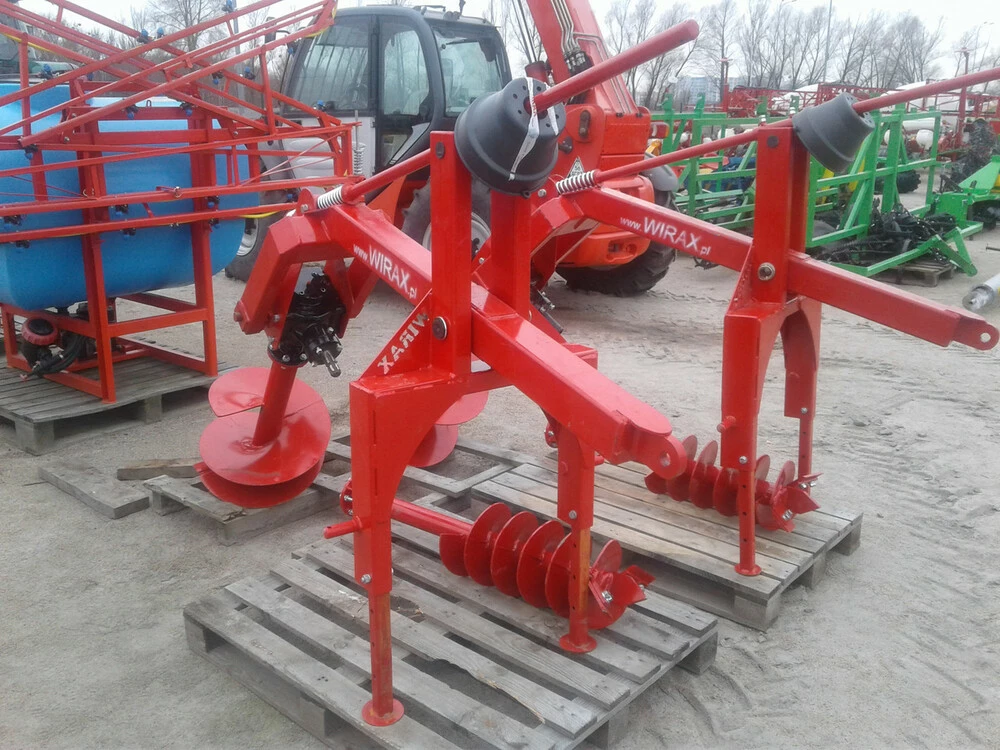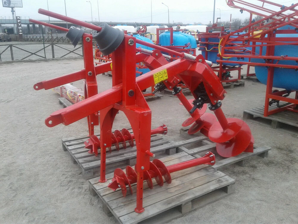 Представляємо універсальний ямобур польського виробництва для тракторів. Вага свердла: Ø500 mm 27 кг, Ø250 mm 24 кг, передаточне число редуктора 1,61. Шнеки бура мають таку форму гвинтовий робочою поверхнею, яка забезпечує мінімальне розкидання грунту з виритої лунки. Це дозволяє скоротити час на подальші роботи із засипання ям. Робоча частина бура зроблена з дуже міцного металу, і тому йому під силу навіть тверді грунти.